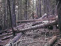 During 2003, the National Park Service (NPS) did a major fuel reduction - 300 feet wide on both sides of the Big Oak Flat Road - by creating and burning more than 20,000 piles of accumulated surface fuel and very small trees, otherwise known as "ladder fuels". Mike explained that removal of this fuel strata reduces the risk of fire getting into the forest canopy.